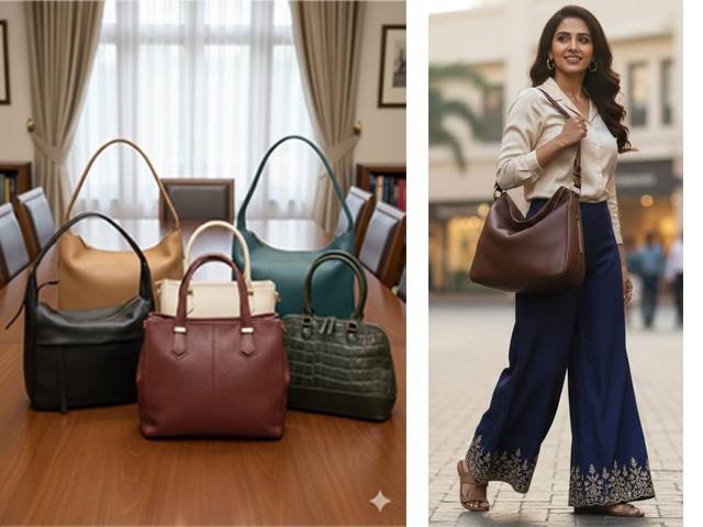Nadeem Impex is known to produce intricate hand crafted bags for women in soft, light weight, drum dyed polished leather. For men’s it specialises in producing overnight luggage bags, briefcase, messenger and sling bags in high Veg leather with oil and waxes.